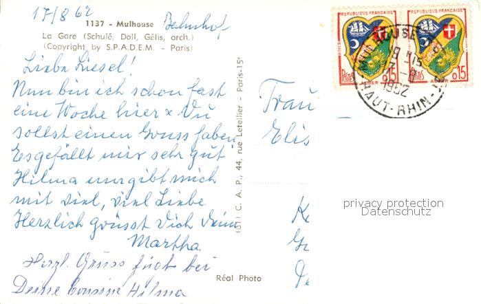 13334213 carte postale Mulhouse Muehlhausen La Gare postalisch gelaufen Erhaltung siehe scans [WerneD78] KatCode: 11170068468224