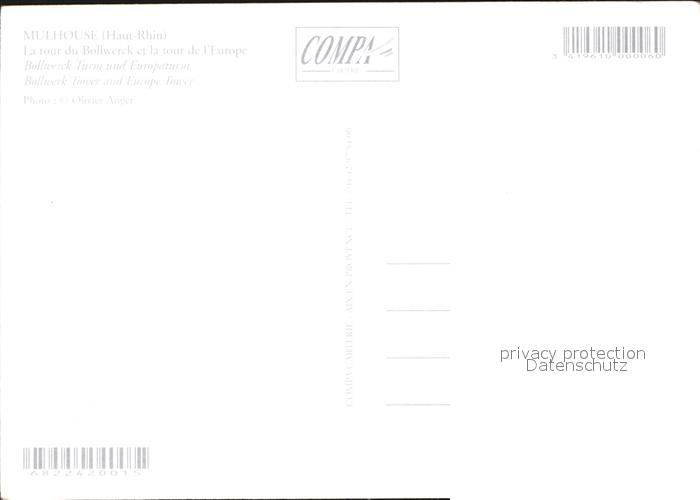 12517909 Mulhouse Muehlhausen La Tour du Bollwerck et la tour de Europe postalisch nicht gelaufen Erhaltung siehe scans KatCode: 11170068468224