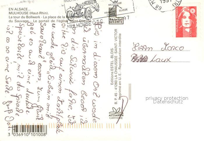 13746099 Mulhouse Muehlhausen La tour du Bollwerk La place de la Reunion La rue du Sauvage Le portail de l’eglise Saint Etienne postalisch gelaufen Erhaltung siehe scans [WerneD78] carte postale Wern Katcode 11170068468224