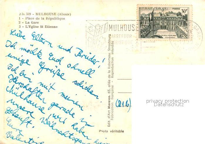 13297805 carte postale Mulhouse Muehlhausen Place de la Republique Gare Eglise St. Etienne postalisch gelaufen Erhaltung siehe scans [LiesaD40] KatCode: 11170068468224