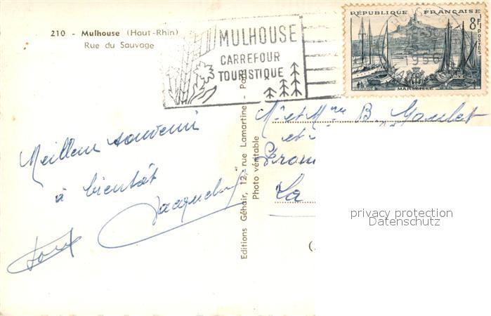 carte postale Mulhouse Muehlhausen Rue du Sauvage postalisch gelaufen Erhaltung siehe scans [FriedD77]