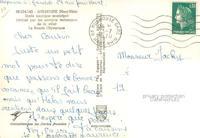 13618855 Mulhouse Muehlhausen Stade nautique municipal Le Bassin Olympique postalisch gelaufen Erhaltung siehe scans [WerneD78] carte postale Wern Katcode 11170068468224