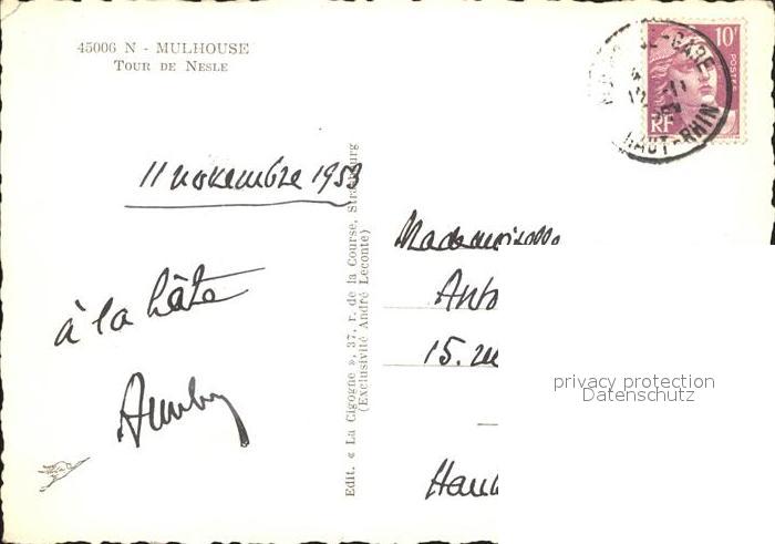 12138680 carte postale Mulhouse Muehlhausen Tour de Nesle postalisch gelaufen Erhaltung siehe scans KatCode: 11170068468224
