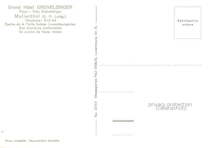 13626614 Mullerthal Petite Suisse Grand Hotel Greiveldinger postalisch nicht gelaufen Erhaltung siehe scans [PaolaD17] Paol Katcode 11300