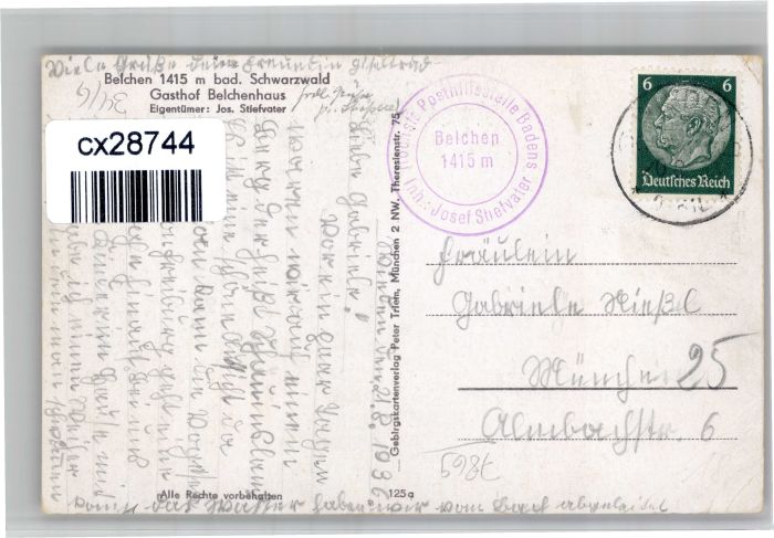 30910194 alte Postkarte Multen Belchen postalisch gelaufen KatCode: 11110008336004