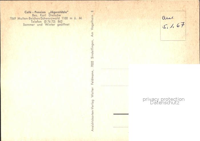 71993082 Multen Belchen Cafe Pension Jaegerstueble postalisch nicht gelaufen Erhaltung siehe scans KatCode: 11110008336004