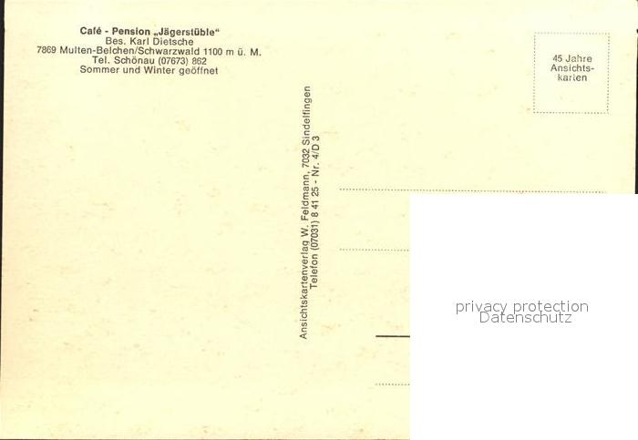 71993048 Multen Cafe Pension Jaegerstueble Belchen postalisch nicht gelaufen Erhaltung siehe scans KatCode: 11110008336004