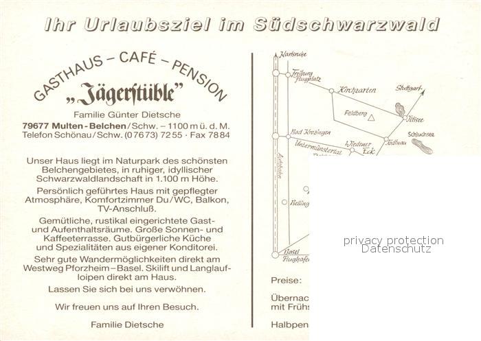 73089325 Multen Gasthaus Jaegerstueble postalisch nicht gelaufen Werbekarte (keine Postkarte) Erhaltung siehe scans [KathaD81] KatCode: 11110008336004
