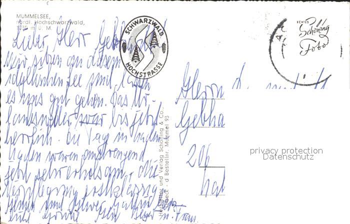72177488 alte Postkarte Mummelsee postalisch gelaufen Erhaltung siehe scans KatCode: 11110008317126