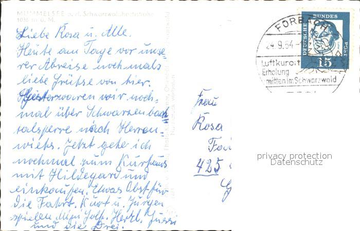 72177487 alte Postkarte Mummelsee postalisch gelaufen Erhaltung siehe scans KatCode: 11110008317126