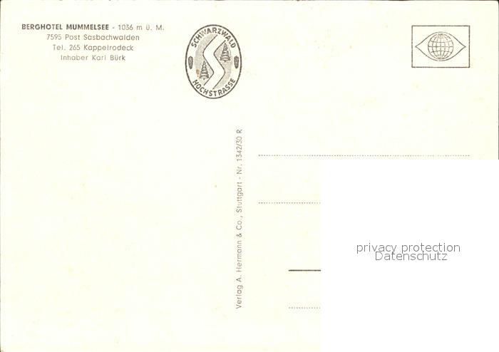 72511765 Mummelsee Berghotel postalisch nicht gelaufen Erhaltung siehe scans KatCode: 11110008317126