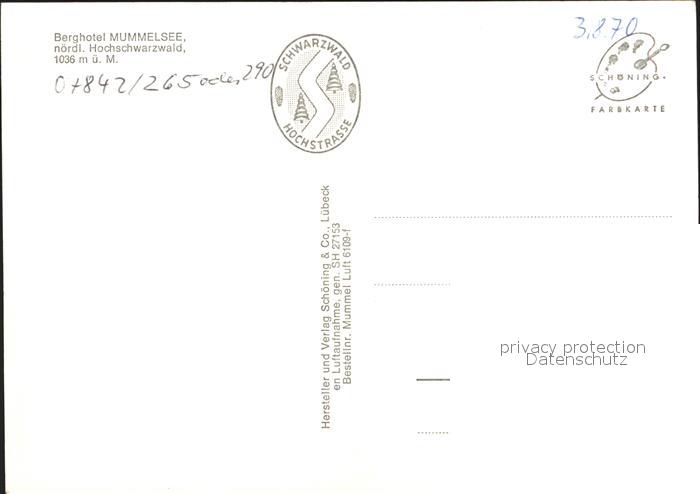 71994537 Mummelsee Berghotel postalisch nicht gelaufen Erhaltung siehe scans KatCode: 11110008317126