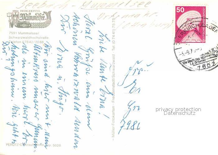 72888955 alte Postkarte Mummelsee Berghotel postalisch gelaufen Erhaltung siehe scans [AndreD76] KatCode: 11110008317126