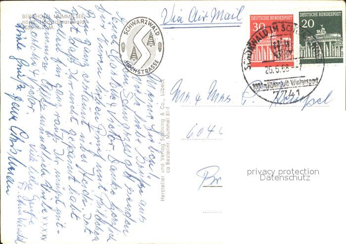 72448138 alte Postkarte Mummelsee Berghotel am See postalisch gelaufen Erhaltung siehe scans KatCode: 11110008317126