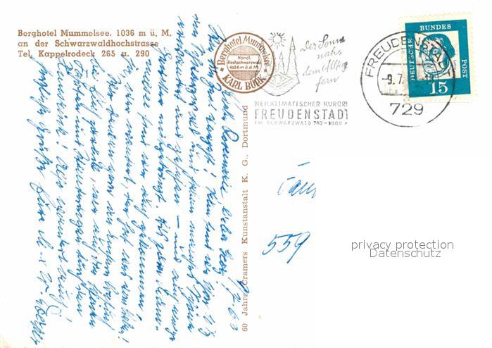 72883989 alte Postkarte Mummelsee Berghotel im Schwarzwald Schwarzwaldhochstrasse postalisch gelaufen Erhaltung siehe scans [FriedD77] KatCode: 11110008317126