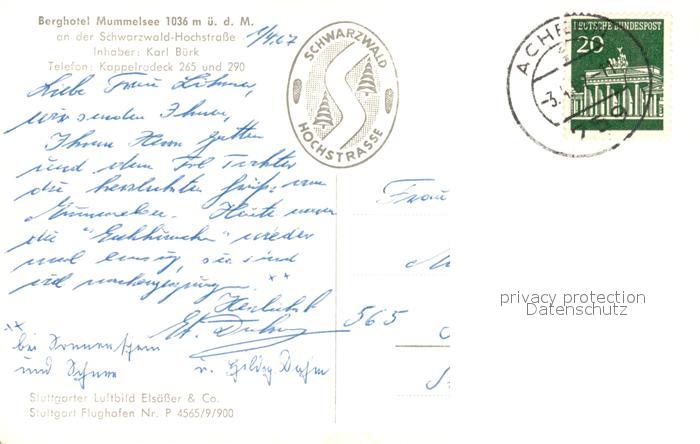 73080379 alte Postkarte Mummelsee Berghotel Landschaftspanorama Schwarzwald postalisch gelaufen Erhaltung siehe scans [FriedD77] KatCode: 11110008317126