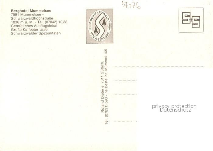 73834446 Mummelsee Berghotel Mummelsee Gedichttext postalisch nicht gelaufen Erhaltung siehe scans [FriedD77] KatCode: 11110008317126