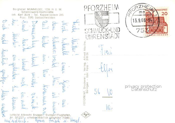 72954715 alte Postkarte Mummelsee Fliegeraufnahme Hornisgrinde Rheintal postalisch gelaufen Erhaltung siehe scans [PaolaD17] KatCode: 11110008317126
