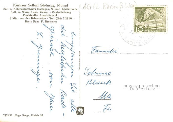 13798911 alte Postkarte Mumpf AG Kurhaus Solbad Schoenegg postalisch gelaufen Fliegeraufnahme Erhaltung siehe scans [FriedD77] KatCode: 11470010045410