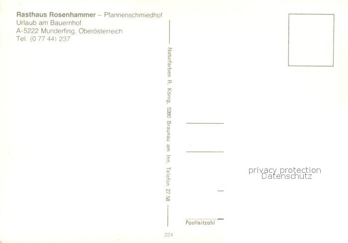 73588602 Munderfing Ober?sterreich Rasthaus Rosenhammer Pfannenschmiedhof postalisch nicht gelaufen Erhaltung siehe scans [PaolaD17] KatCode: