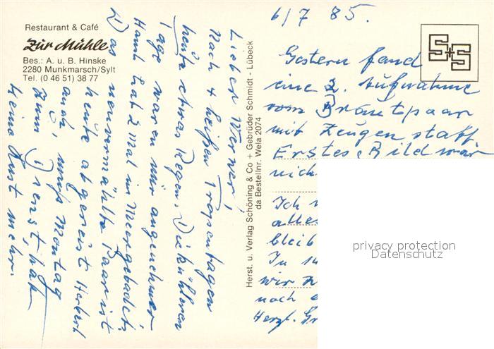73615843 Munkmarsch Restaurant Cafe Zur Muehle Gaststube postalisch nicht gelaufen Erhaltung siehe scans [WerneD78] KatCode: 11110001054133