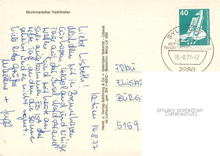 73714612 alte Postkarte Munkmarsch Yachthafen Fliegeraufnahme postalisch gelaufen Erhaltung siehe scans [WerneD78] KatCode: 11110001054133