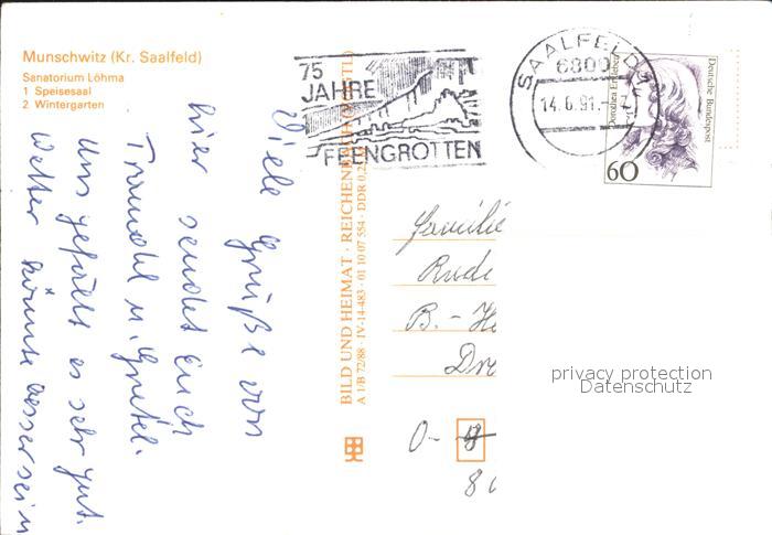 72356176 alte Postkarte Munschwitz Sanatorium Loehma Speisesaal Wintergarten postalisch gelaufen Erhaltung siehe scans KatCode: 11110016073106