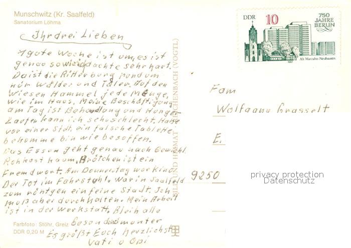73091992 alte Postkarte Munschwitz Sanatorium Loehma postalisch gelaufen Erhaltung siehe scans [KathaD81] KatCode: 11110016073106