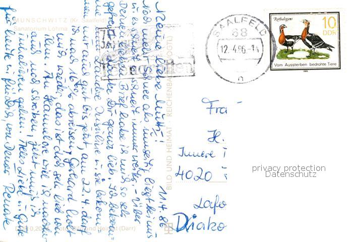 73099250 alte Postkarte Munschwitz Sanatorium postalisch gelaufen Erhaltung siehe scans [KathaD81] KatCode: 11110016073106