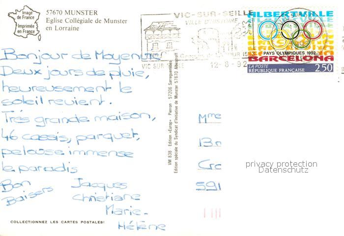13160743 carte postale Munster 57 Moselle Collegiale Saint Nicolas postalisch gelaufen Erhaltung siehe scans [KathaD81] KatCode: 11170057257494