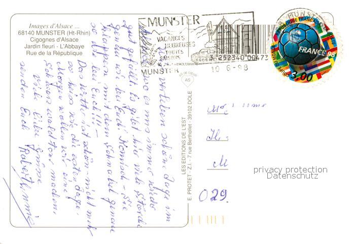 13607167 Munster Haut Rhin Elsass Cigognes d_Alsace Jardin fleuri Abbaye Rue de la République KatCode 11170068268226