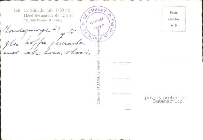 12282984 Munster Haut Rhin Elsass La Schlucht Hotel- Restaurant du Chalet postalisch nicht gelaufen Erhaltung siehe scans KatCode: 11170068268226