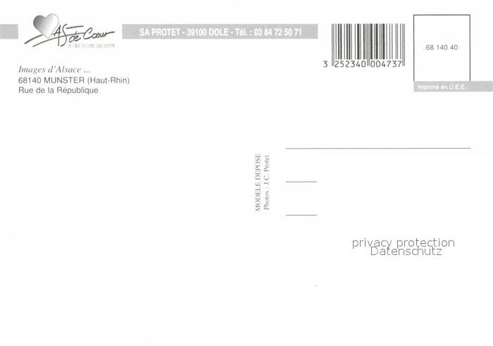 12842677 Munster Haut Rhin Elsass Rue de la Republique postalisch nicht gelaufen Erhaltung siehe scans [NatalD47] KatCode: 11170068268226