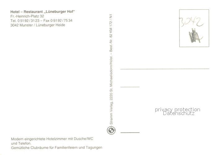 73642390 Munster oertze Hotel Restaurant Lueneburger Hof postalisch nicht gelaufen Erhaltung siehe scans [FriedD77] KatCode: 11110003358016