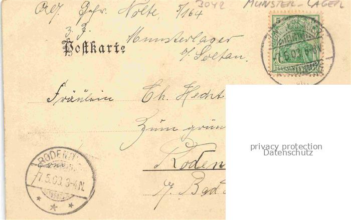 74062350 alte Postkarte Munster Truppenuebungsplatz Munsterlager Soltau-Fallingbostel Teilansicht Truppenuebungsplatz postalisch gelaufen Erhaltung siehe scans [FriedD77] KatCode: 11110003358016
