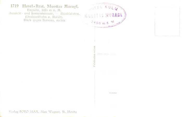 13948703 Muottas Muragl Muottas Murail 2453m GR Hotel Restaurant Sonnenterrasse postalisch nicht gelaufen Erhaltung siehe scans [WerneD78] KatCode: 11470360085386