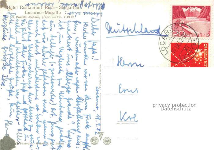 34144476 alte Postkarte Muralto Locarno Lago Maggiore TI Albergo Rosa Restaurant Seegarten postalisch gelaufen Erhaltung siehe scans [WerneD78] KatCode: 11470210655980