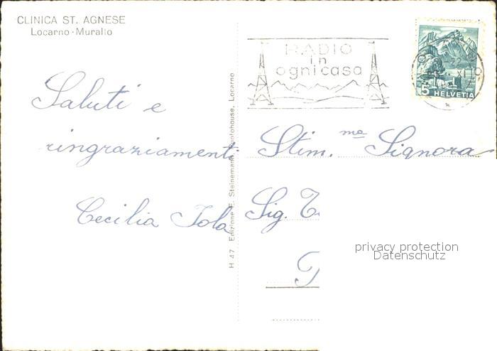 11656342 alte Postkarte Muralto TI Clinica St. Agnese postalisch gelaufen Erhaltung siehe scans KatCode: 11470210655980