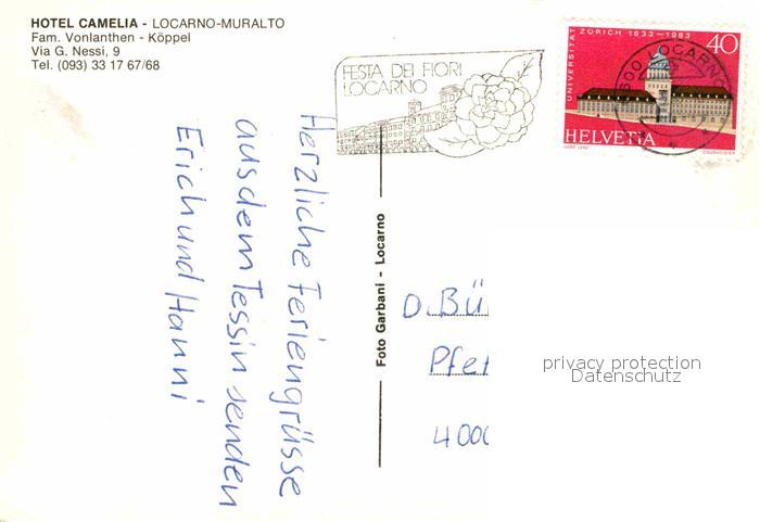 32626979 Muralto TI Hotel Carmelia postalisch nicht gelaufen Erhaltung siehe scans [AndreD76] Andr Katcode 11470210655980