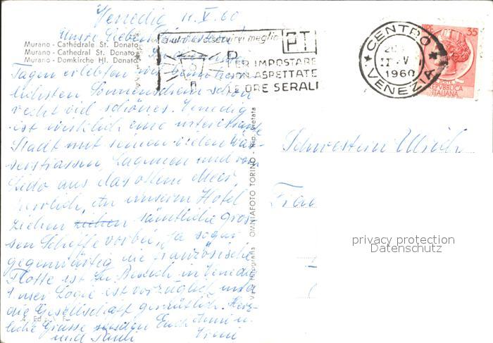 old postcard Murano Venezia Duomo San Donato postalisch gelaufen Erhaltung siehe scans