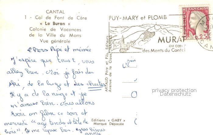 13581569 carte postale Murat Cantal Col de Font de Cère Le Buron Colonie de Vacances de la Ville du Mans postalisch gelaufen Erhaltung siehe scans [FriedD77] KatCode: 11170015315138