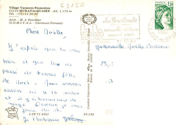13948167 Murat-le-Quaire Village Vacances Restaurant des moutons postalisch gelaufen Erhaltung siehe scans [FriedD77] carte postale Frie Katcode 11170063263246