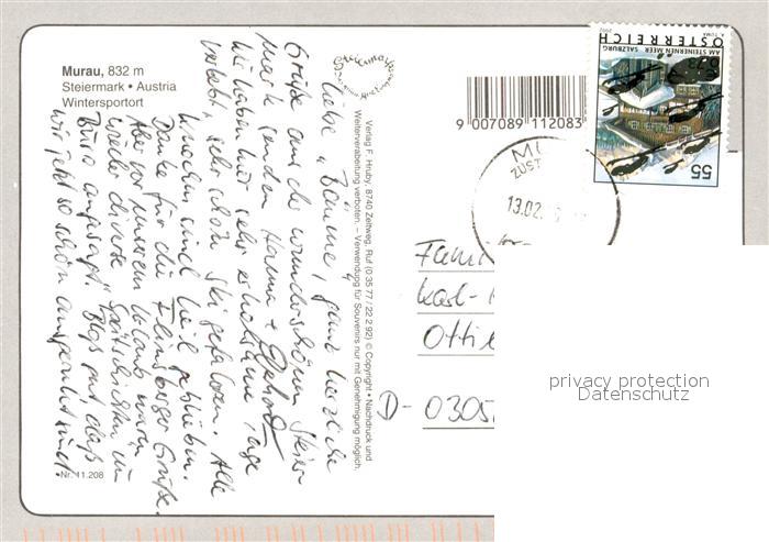 73598733 alte Postkarte Murau Steiermark postalisch gelaufen Erhaltung siehe scans [PaolaD17] KatCode: 11390226061411