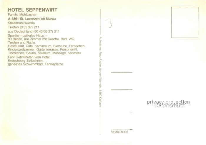 73124532 Murau Steiermark Sankt Lorenzen Hotel Seppenwirt postalisch nicht gelaufen Erhaltung siehe scans [KathaD81] KatCode: 11390226061411