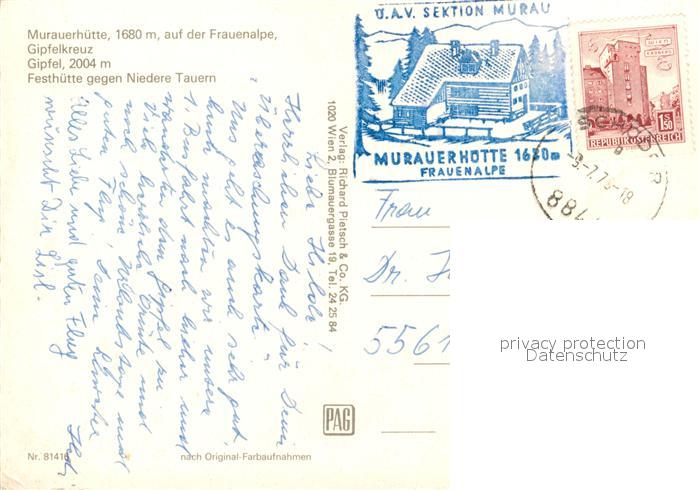 73231335 alte Postkarte Murauerhuette Frauenalpe Murauerhuette postalisch gelaufen Erhaltung siehe scans [LiesaD40] KatCode: 11390226061411