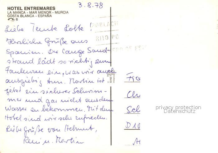 old postcard Murcia Hotel Entremares postalisch gelaufen Erhaltung siehe scans [KathaD81]