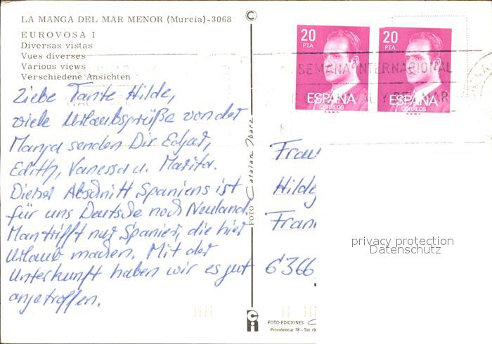 old postcard Murcia La Manga del Mar Menor postalisch gelaufen Erhaltung siehe scans