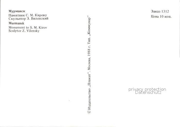 Murmansk Monument to S. M. Kirov postalisch nicht gelaufen Erhaltung siehe scans [NatalD47]