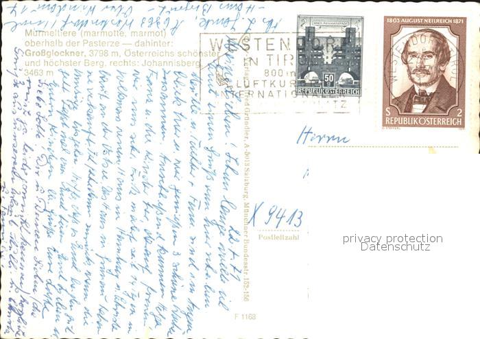 alte Postkarte Murmeltier Pasterze Grossglockner Johannisberg postalisch gelaufen Erhaltung siehe scans [PaolaD17 kt110box]