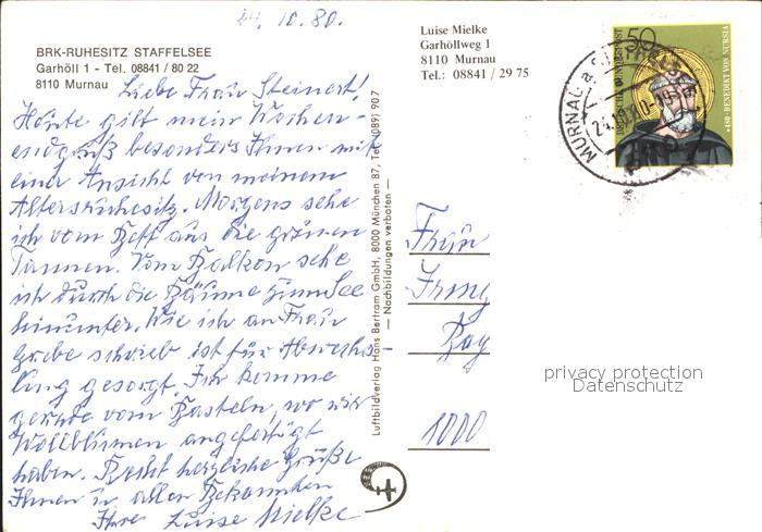 71907627 alte Postkarte Murnau Staffelsee BRK-Ruhesitz Staffelsee Fliegeraufnahme postalisch gelaufen KatCode: 11110009180124